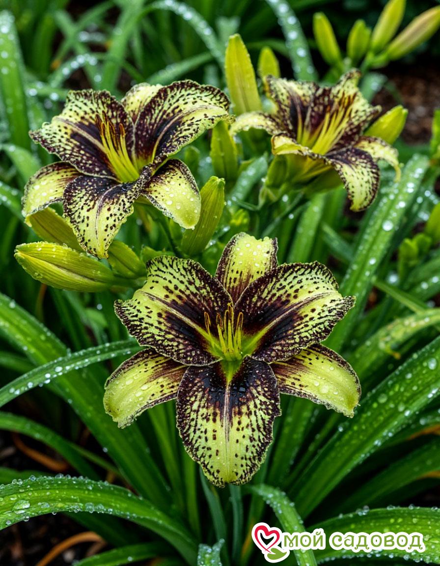 Защита от вредителей и болезней: Лилейники относительно устойчивы к вредителям и болезням, но иногда могут поражаться слизнями, тлей или ржавчиной. При необходимости применяют соответствующие меры защиты.